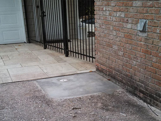 Before a single shovel breaks ground, we photograph your landscaping and lay plywood across the yard to protect the surface. Any concrete or paving in the way is broken out cleanly, and doormat-sized holes are dug down to the grade beam at each pier location.