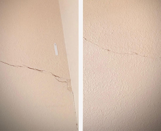- Sheetrock cracks running diagonally — Straight vertical cracks along drywall seams are usually just loose joint tape. But diagonal cracks cutting across the middle of a wall or room are a different story — that’s foundation movement.